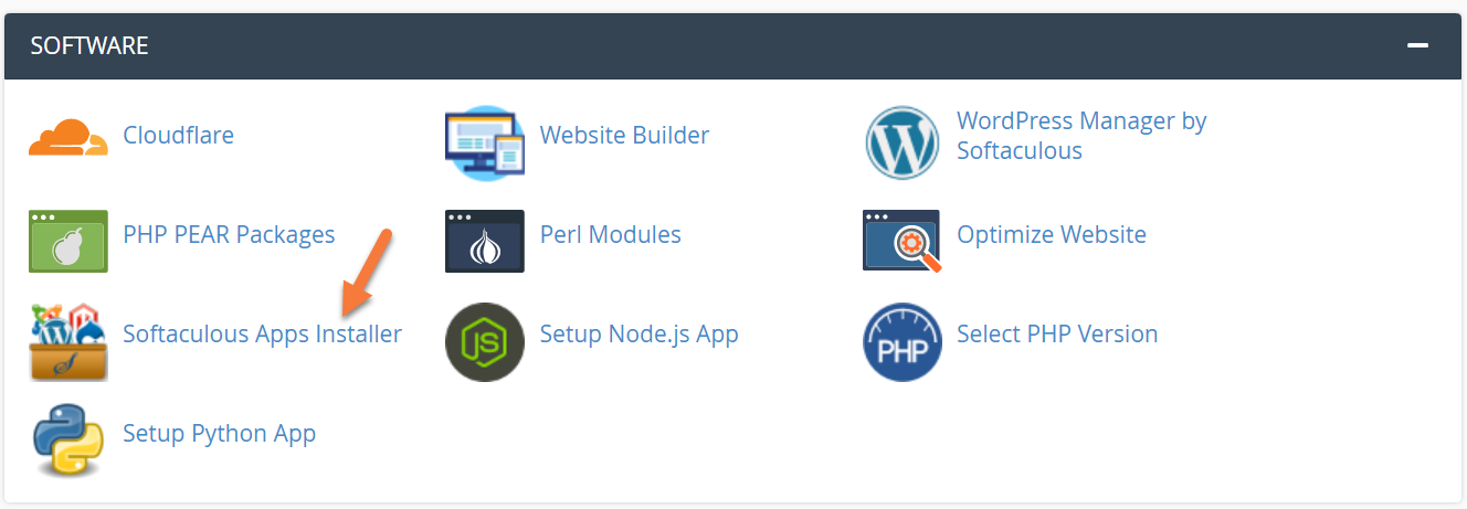 Step 2: Scroll down to the Software section of cPanel and click Softaculous Apps Installer to open the utility.