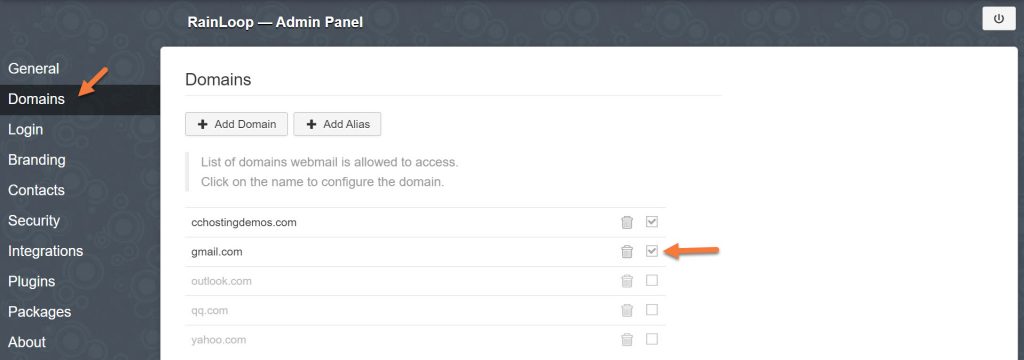 Step 2: Once you are logged in, click Domains on the left. Then uncheck the option next to Gmail.