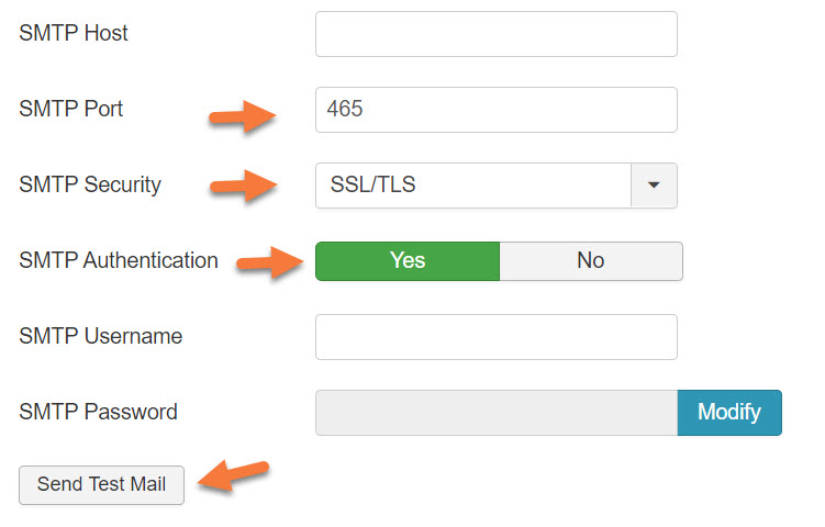 Ensure the SMTP Port is set to port 465, and from the SMTP Security dropdown, you choose SSL/TLS.