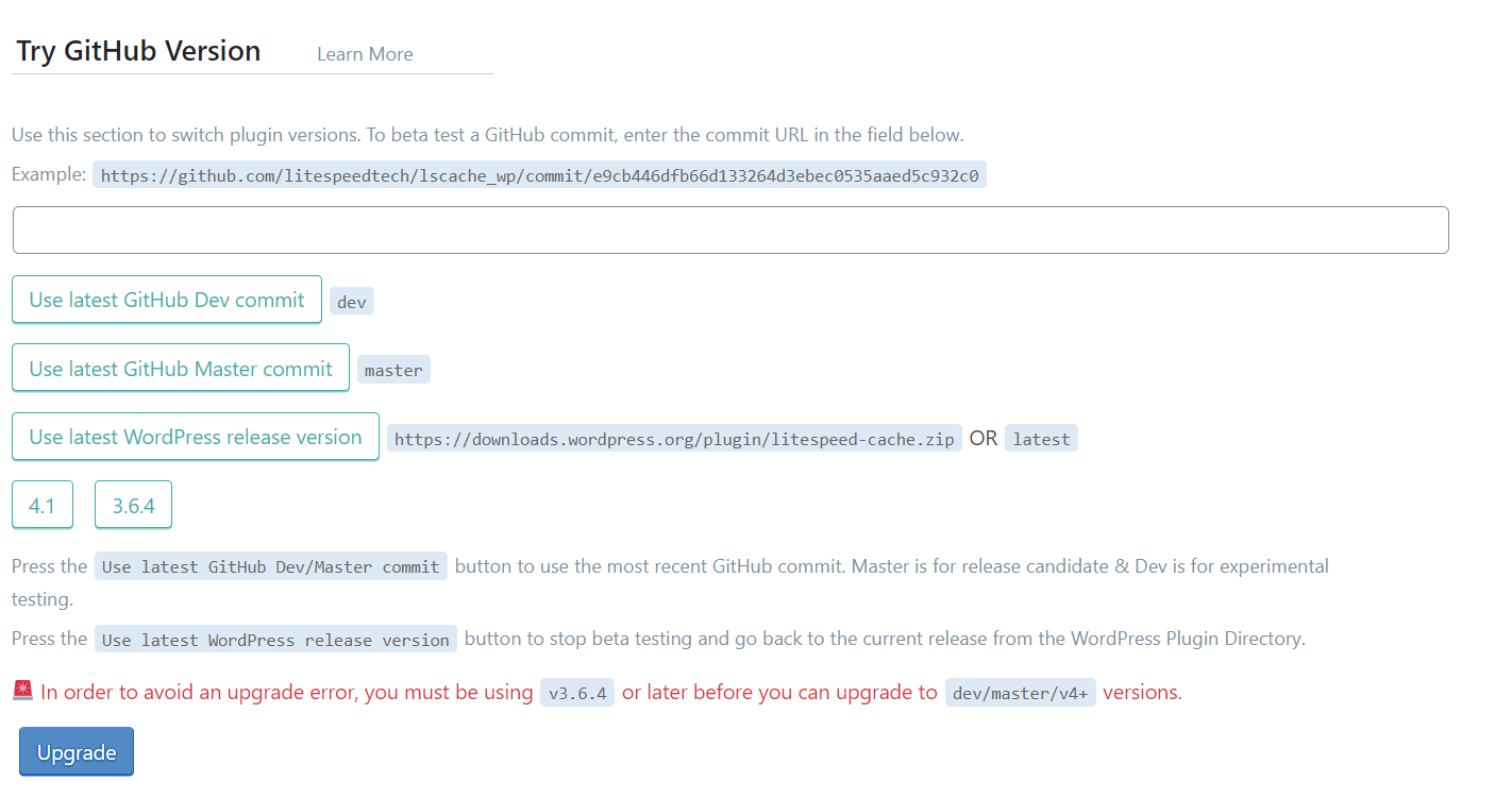 The Beta Test features of LSCache allow you to install the Beta Version of the LSCache for the WordPress plugin.
