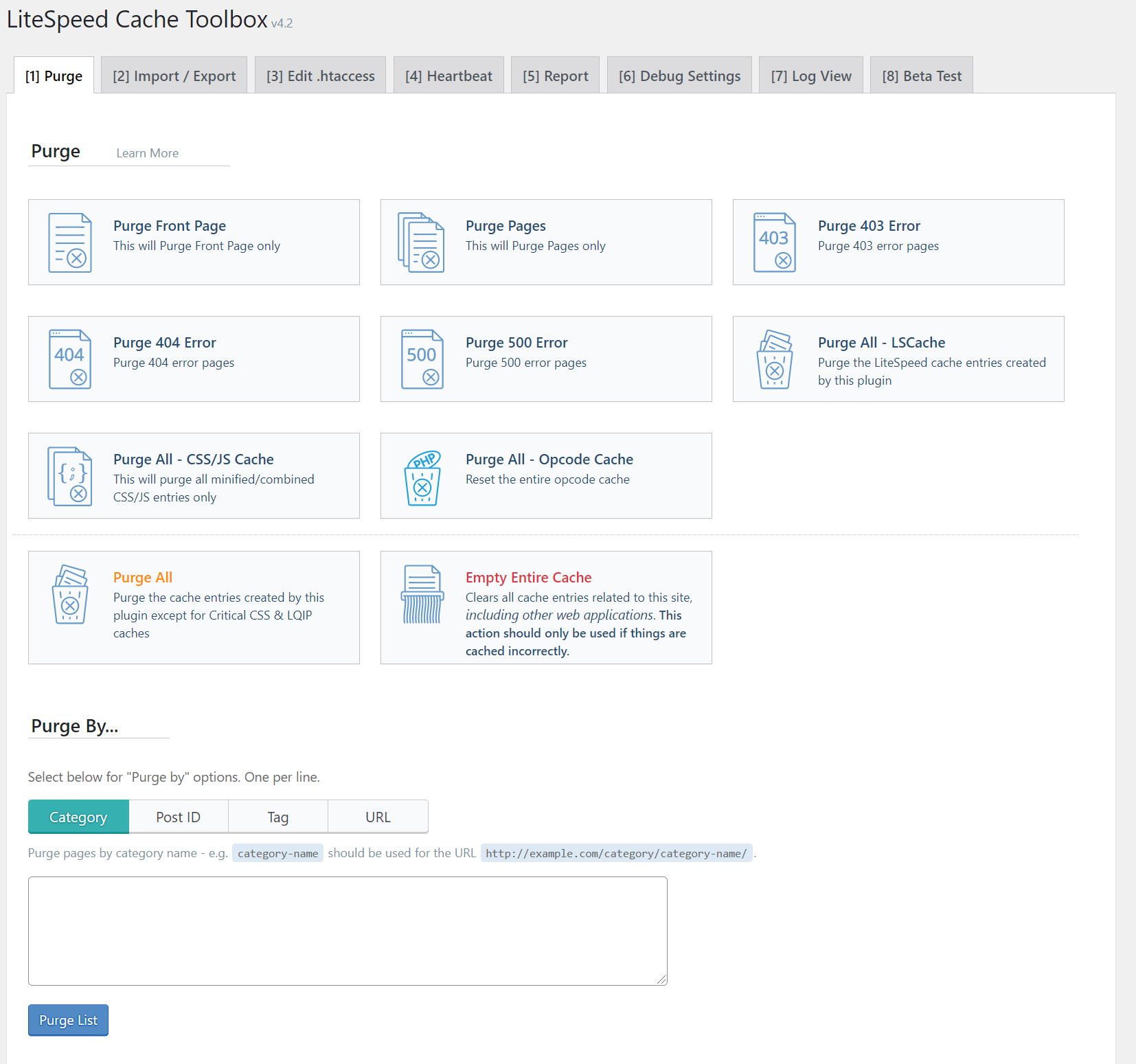 This Knowledge Base article will explain how to use the various features in the LSCache for WordPress toolbox.