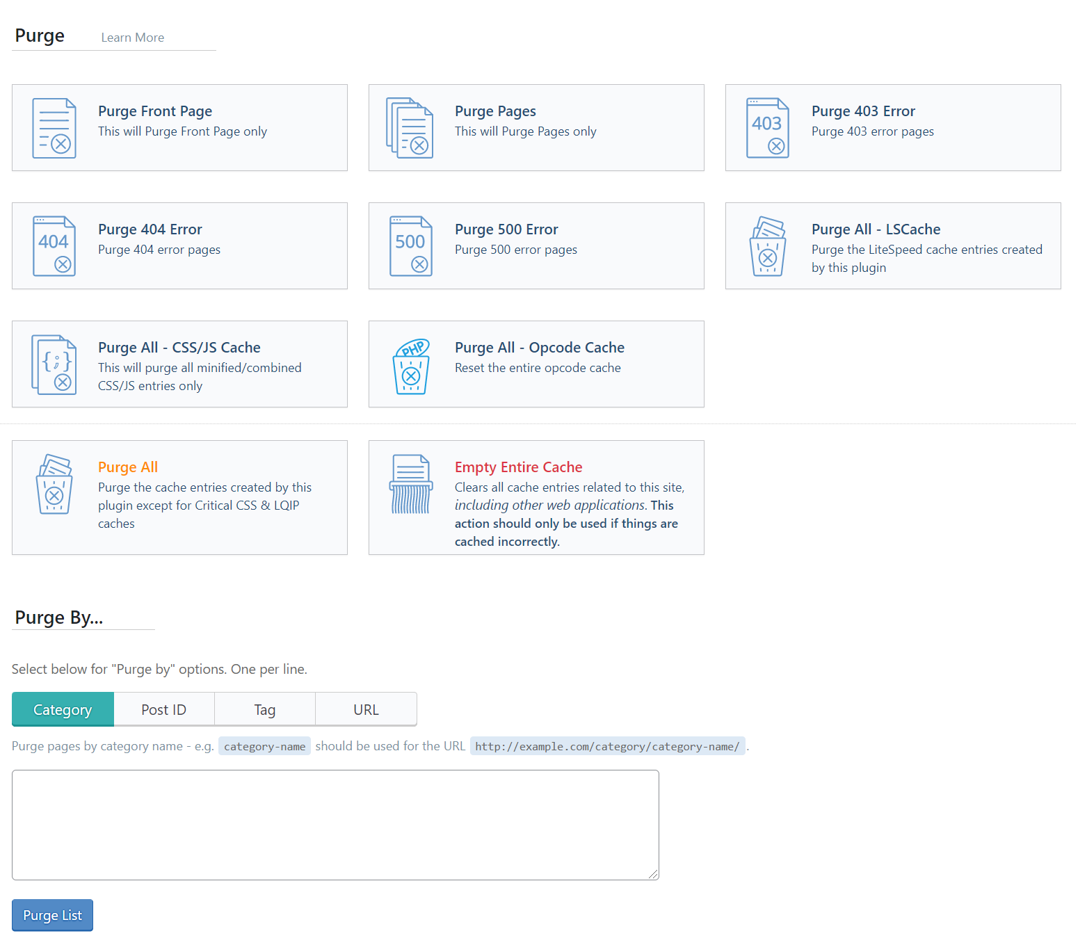 These can be great for cleaning things up after posting new content or making changes, but be sure not to purge the entire cache as it can result in your web server performance taking a hit as doing this to a busy site will cause users to reach uncached pages.
