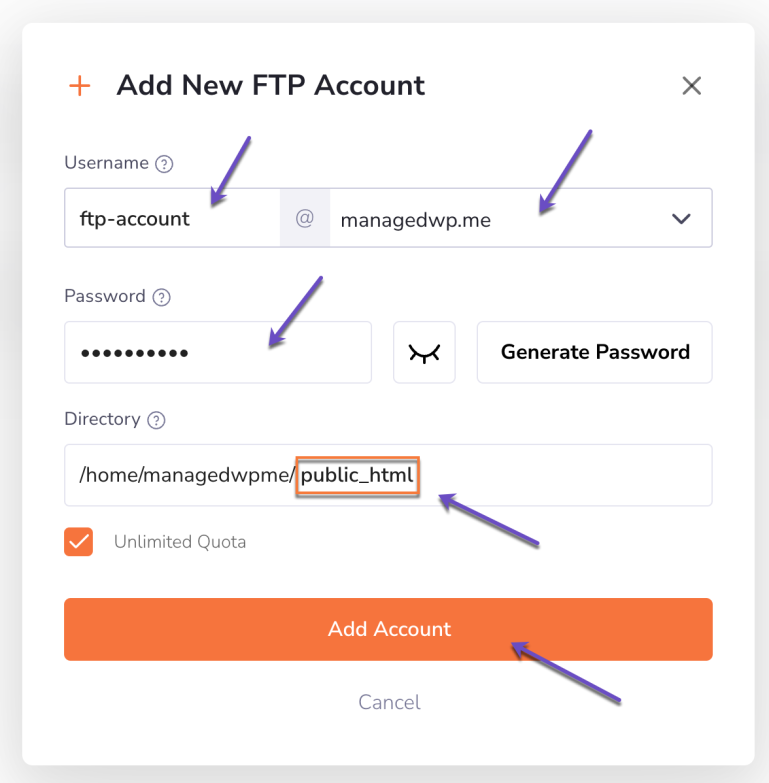 Step 2: Create a New FTP Account