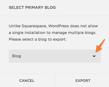 Step 6: If you have more than one Blog Page on your site, a Select Primary Blog message will appear. Only one Blog Page can be exported.
