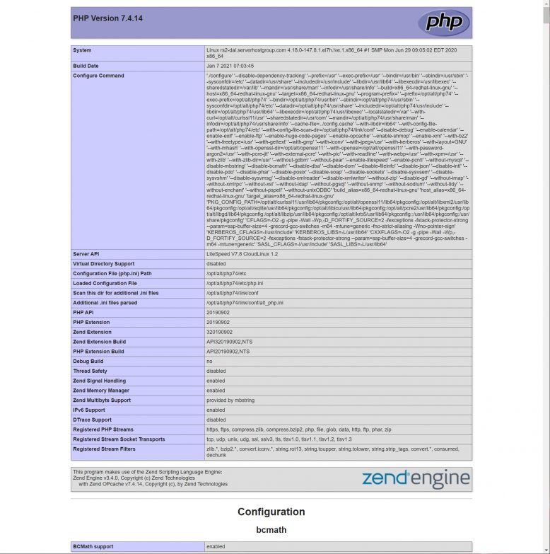 Now, open a new tab in your browser and visit https://yourdomain.tld/info.php. You’ll see a page with the details of your PHP installation: