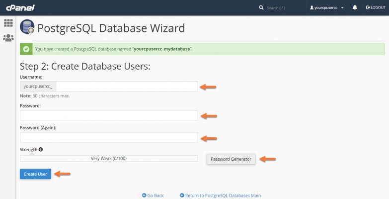 How to create A PostgreSQL Database in cPanel using the PostgreSQL Database Wizard