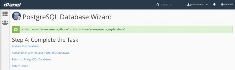 If you need to add additional users to the database you created, click the Add another user for your PostgreSQL database.