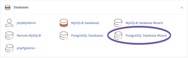 Step 2: Look under the Databases section for the PostgreSQL Database Wizard. Click it to open the Wizard.