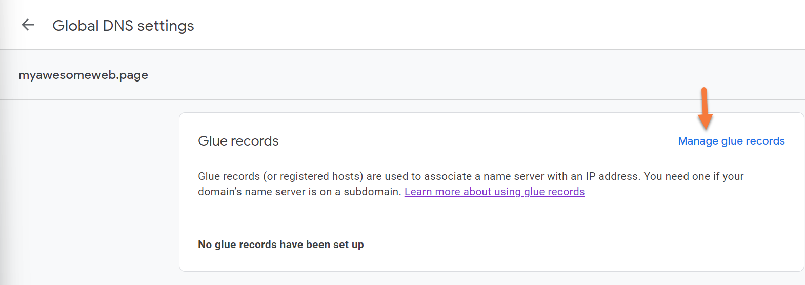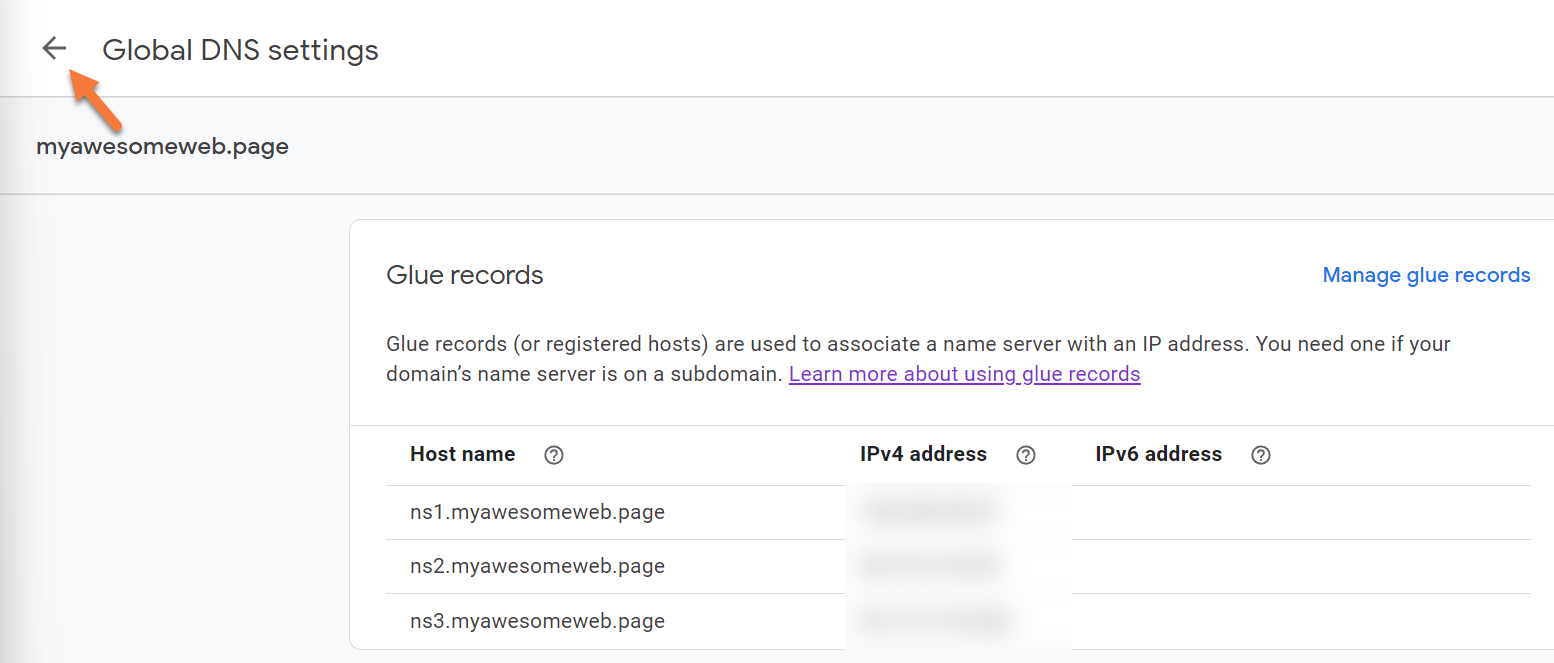 You will be returned to the Glue records page and the records for your domain should look like the image below:
