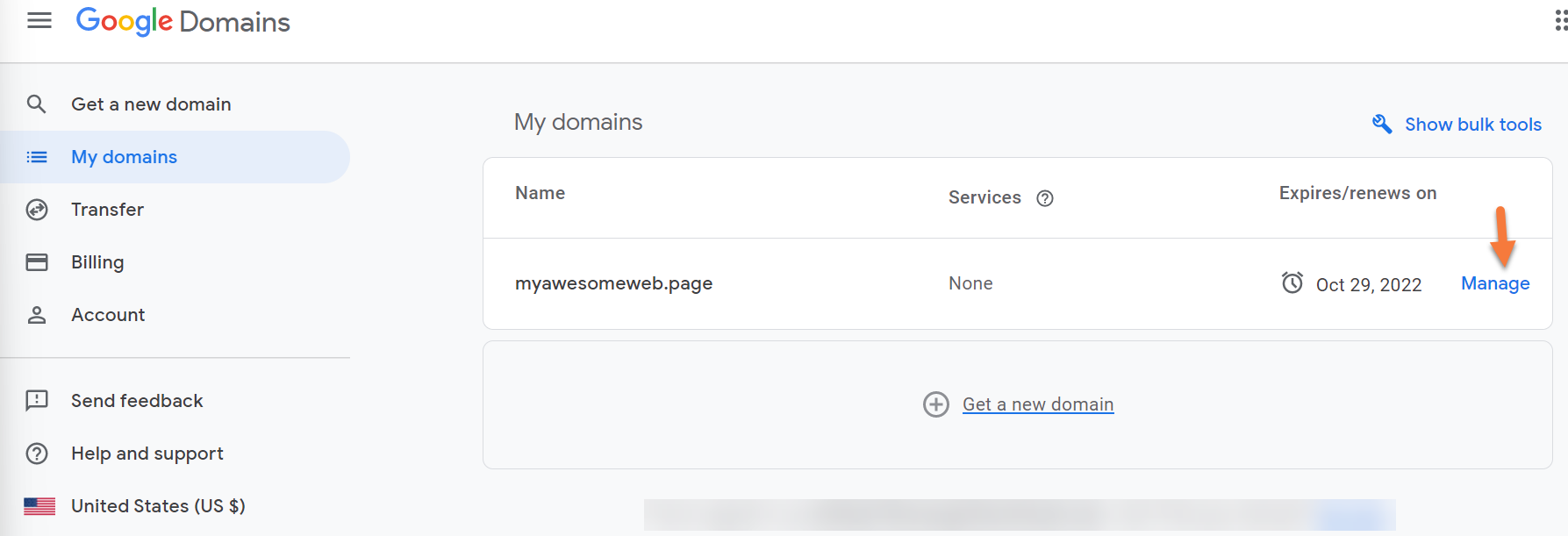 Step 2: After signing into your Google Account, your Google Domains page will load and you will see a list of all domains registered in your Google Domains account.