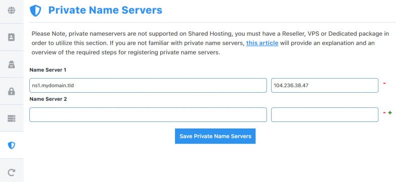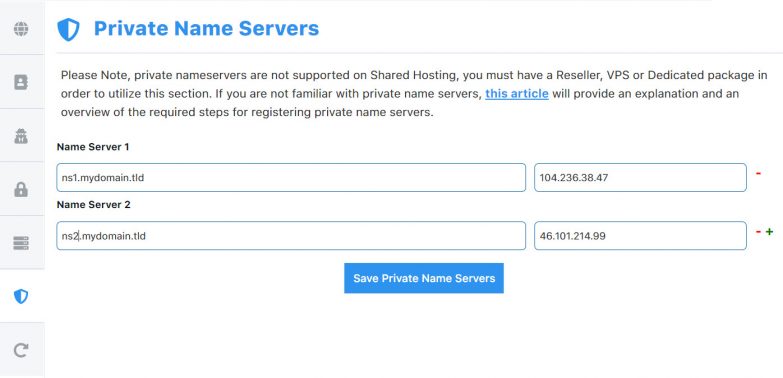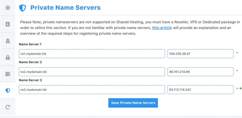 Once you have finished, click the big blue Save Private Nameservers button to make your changes.