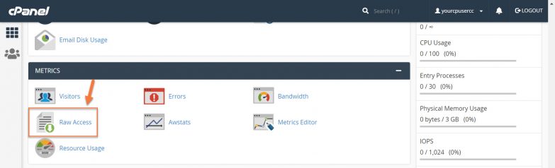 Step 2: Look for the Metrics section (6th from the top of cPanel) and click Raw Access.