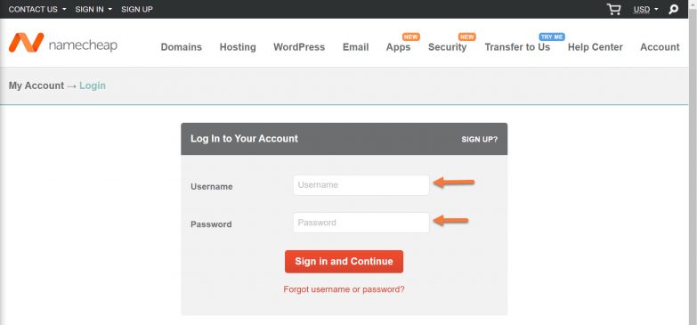 1) Login in to your Namecheap account.