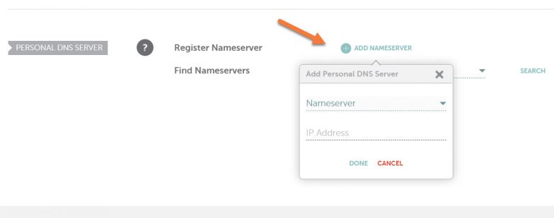 5) Look for the Personal DNS Server option at the bottom and click + Add Nameserver to open the add nameserver modal:
