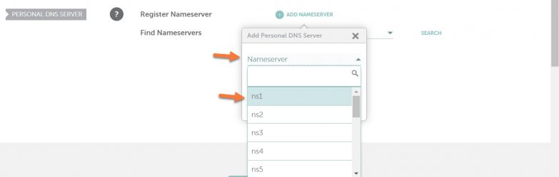 Click into the Nameserver drop-down menu to open the list of options. For the first one, select ns1.