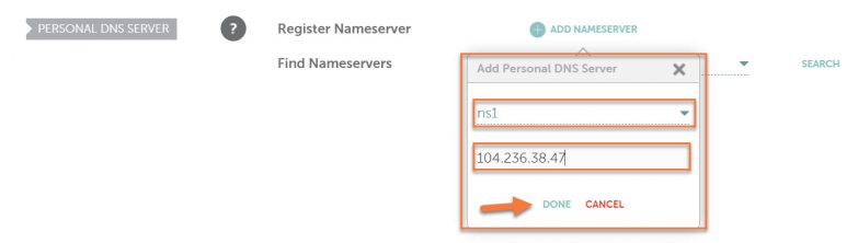 Click Done to save this first private nameserver.