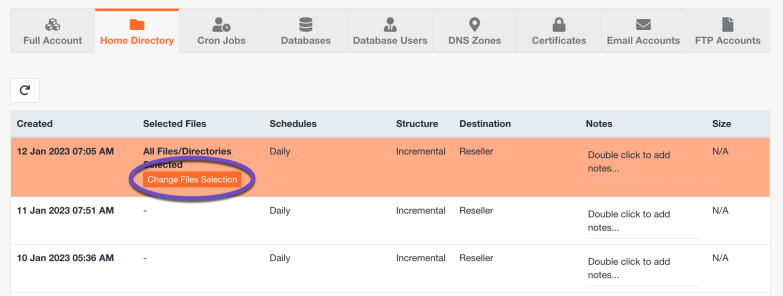 Step 4: After clicking Home Directory, you will be given a list of backups. In my example, I’m going to restore from the latest backup, so I will choose the backup at the top by clicking on it.