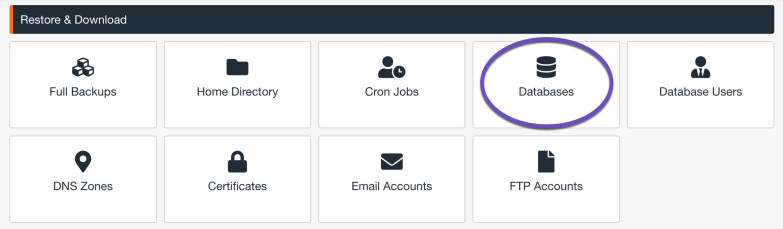 Step 3: Once Jetbackup 5 opens, click Databases to open the file restoration tool.