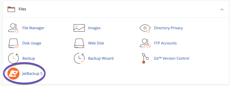 JetBackup 5 provides users with nine different options for creating backups in their cPanel and can be found in the Files section of your cPanel.