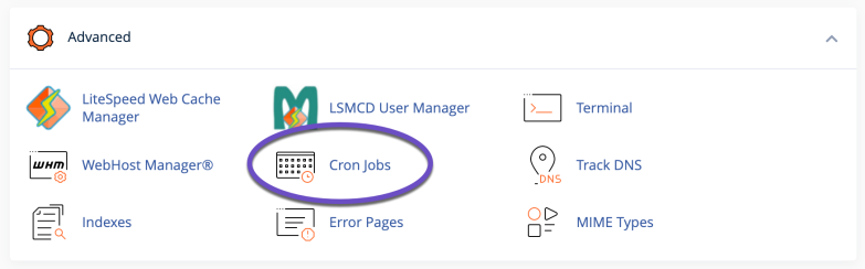 1) Log into cPanel, scroll down to the Advanced section, then click the Cron Jobs icon