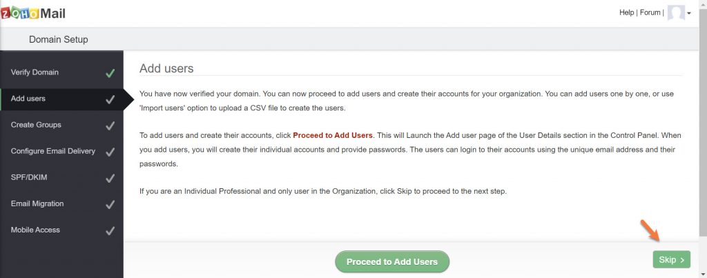 Step 12: After you’ve setup your apps, you can click the skip button. This is the final step in Zoho Setup. After skipping the mobile apps, your basic setup is complete.