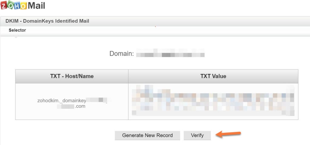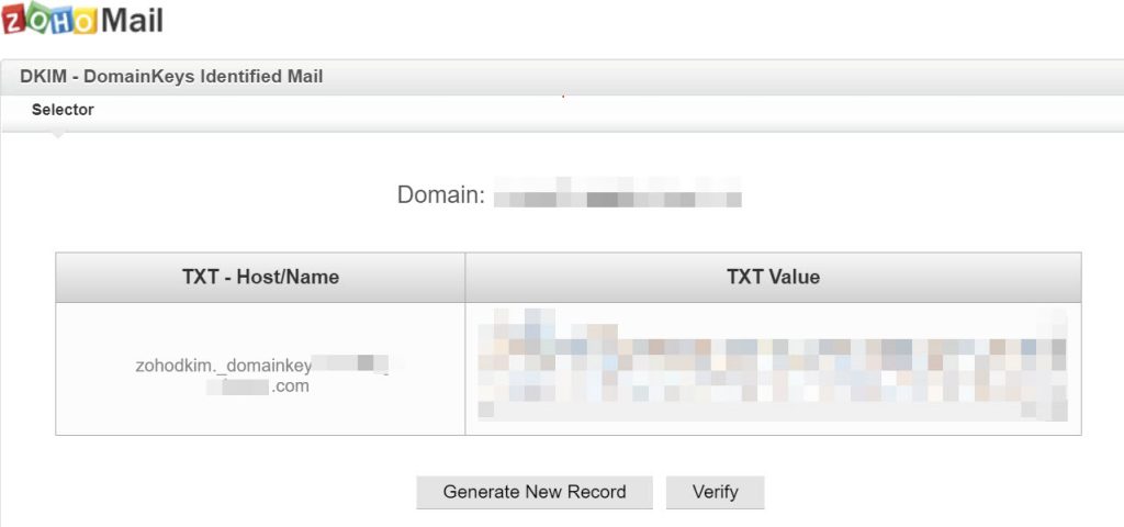The TXT record hostname is mostly the same for each Zoho Mail customer, except your domain name is part of the record. In this case, the record is zohodkim._domainkey.yourdomain.tld