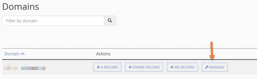 Next, choose the domain name you’re adding to Zoho from the list and click Manage.