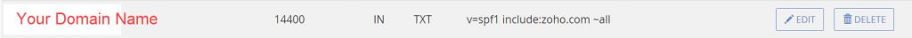 | Blank or @ or yourdomain.tld | v=spf1 include:zoho.com ~all |