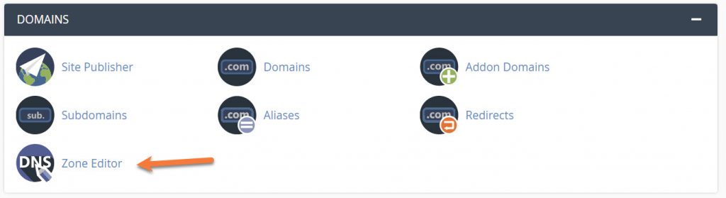 Once your cPanel is open, scroll down to the Domains section and click the Zone Editor.