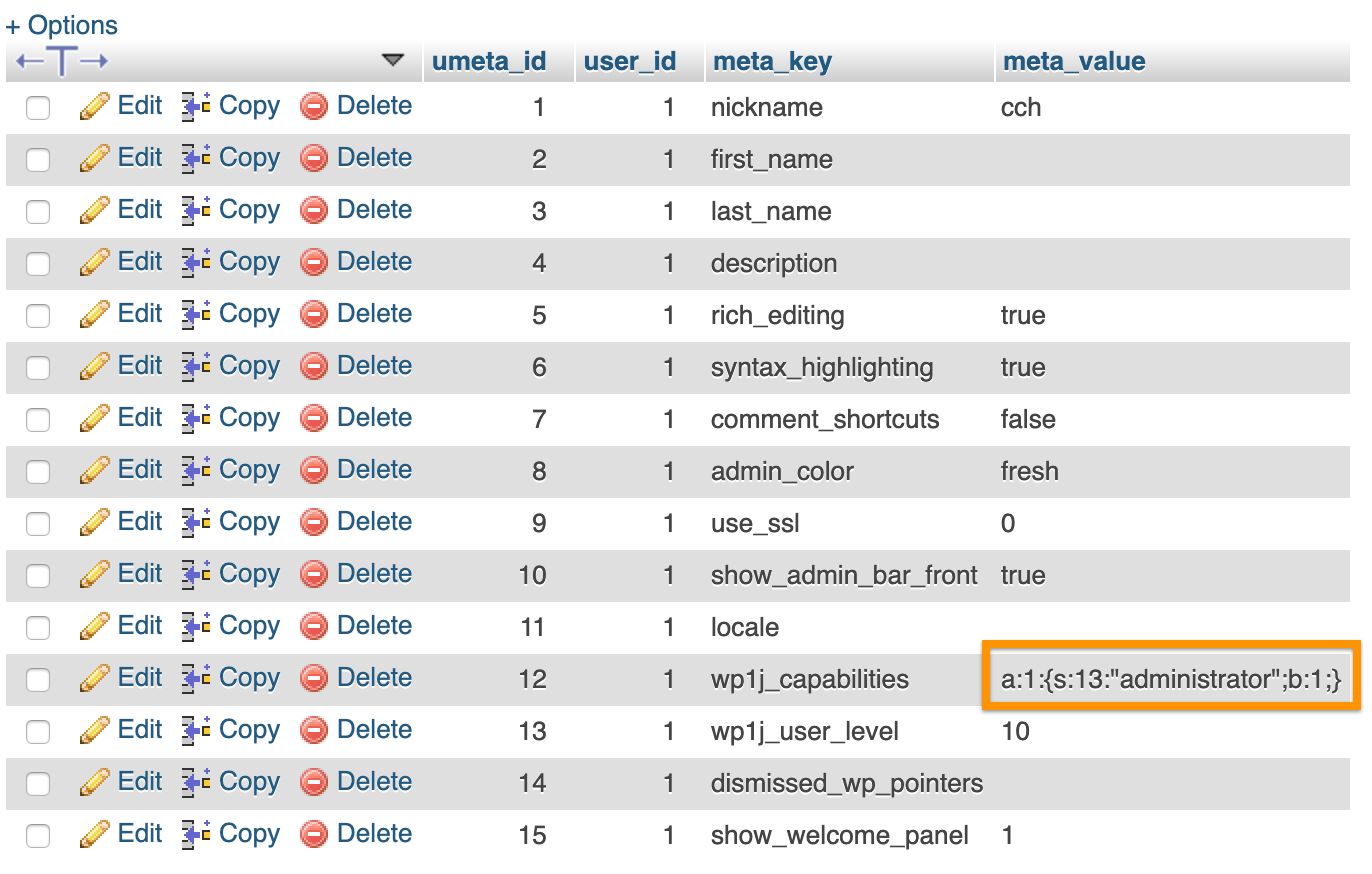 How to change WordPress user roles in MySQL database using PhpMyAdmin?