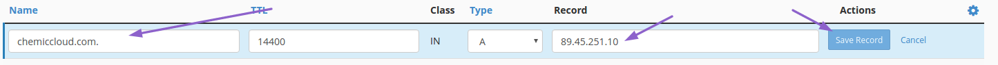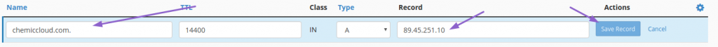 7) To update a DNS record you have previously created simply click the Edit link and make the necessary changed and hit the “Save Record” button to update the record.