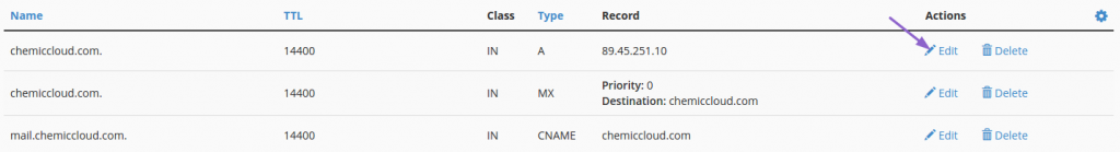 Users can update the DNS records for their domains from within the cPanel, however, please note that this effect will only work if Chemicloud’s nameservers or private nameservers registered with Chemicloud IPs are being used.