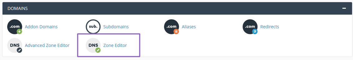 2) Look for the “Domains” section and click on “Zone Editor”.