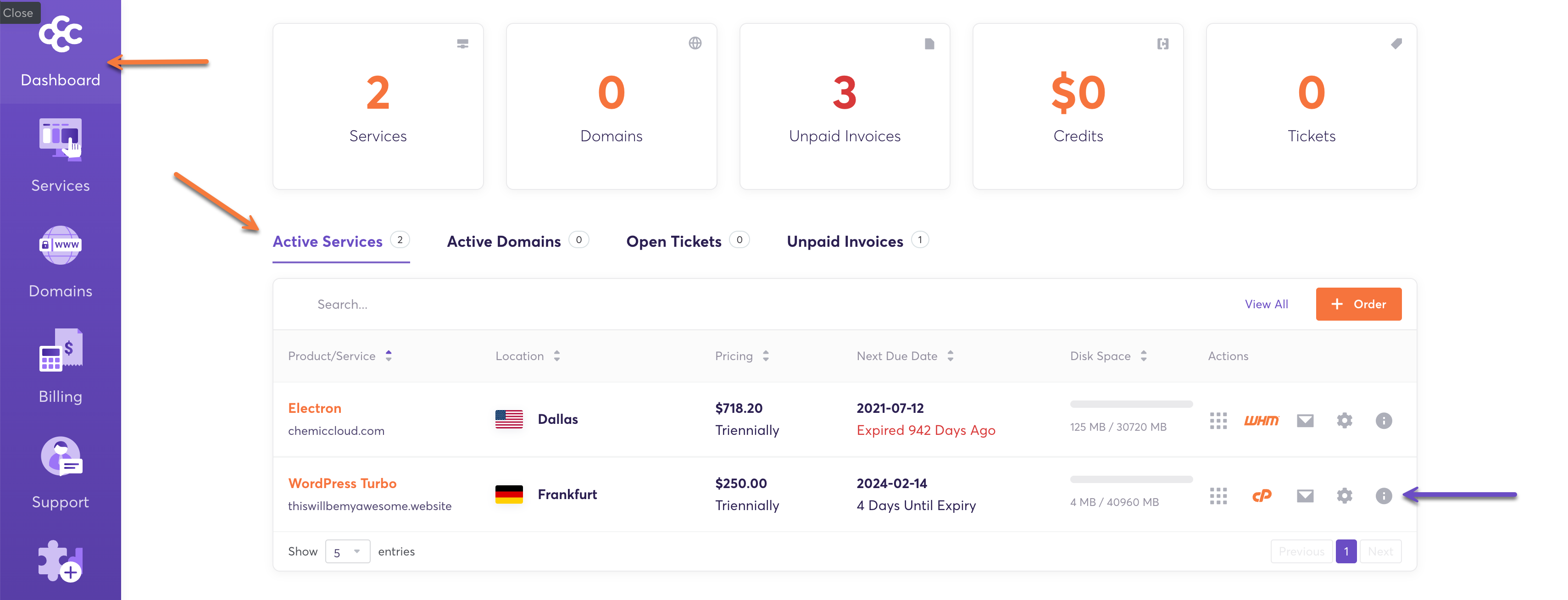 Additionally, a quick method to find your server’s IP address is by logging into your Client Area. Once logged in, click on the “Server Information” icon associated with your hosting service.