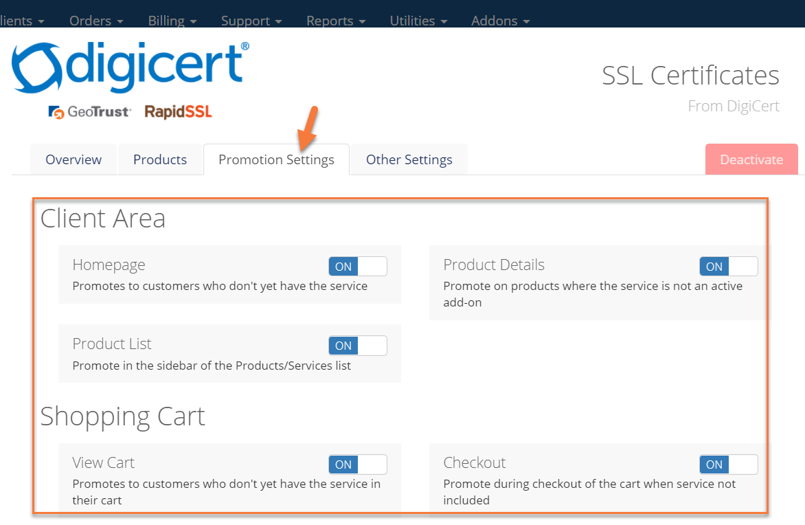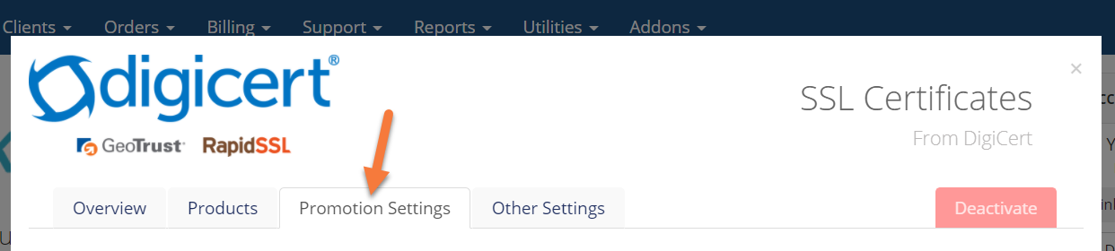 Step 4: For our example, we’ll be setting promotions for our DigiCert SSL Certificates.
