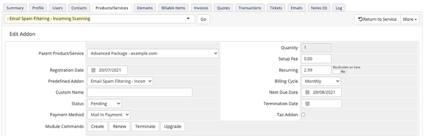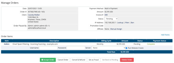 WHMCS MarketConnect orders appear in the Orders list in the Admin area. All MarketCOnnect products have fully automated provisioning that begins as soon as payment has been processed.