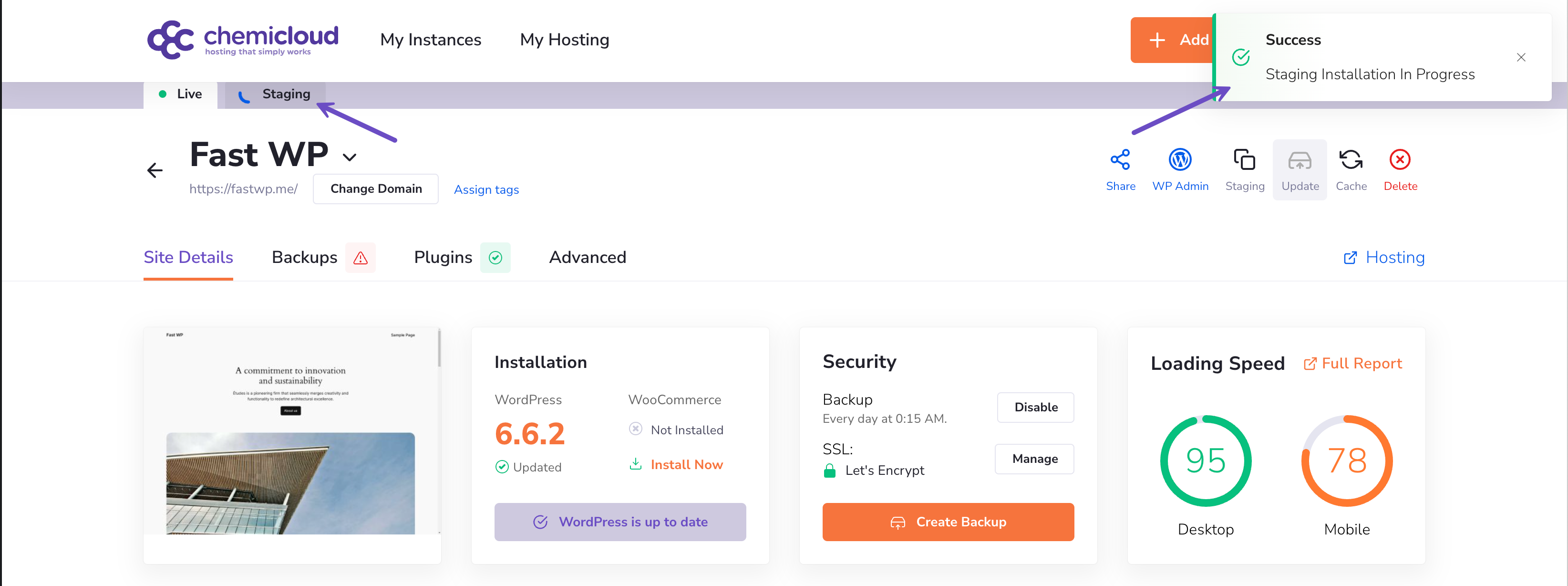 In case you don’t need the staging instance anymore, or you want to free up your disk space, you can easily remove your WordPress staging instance.